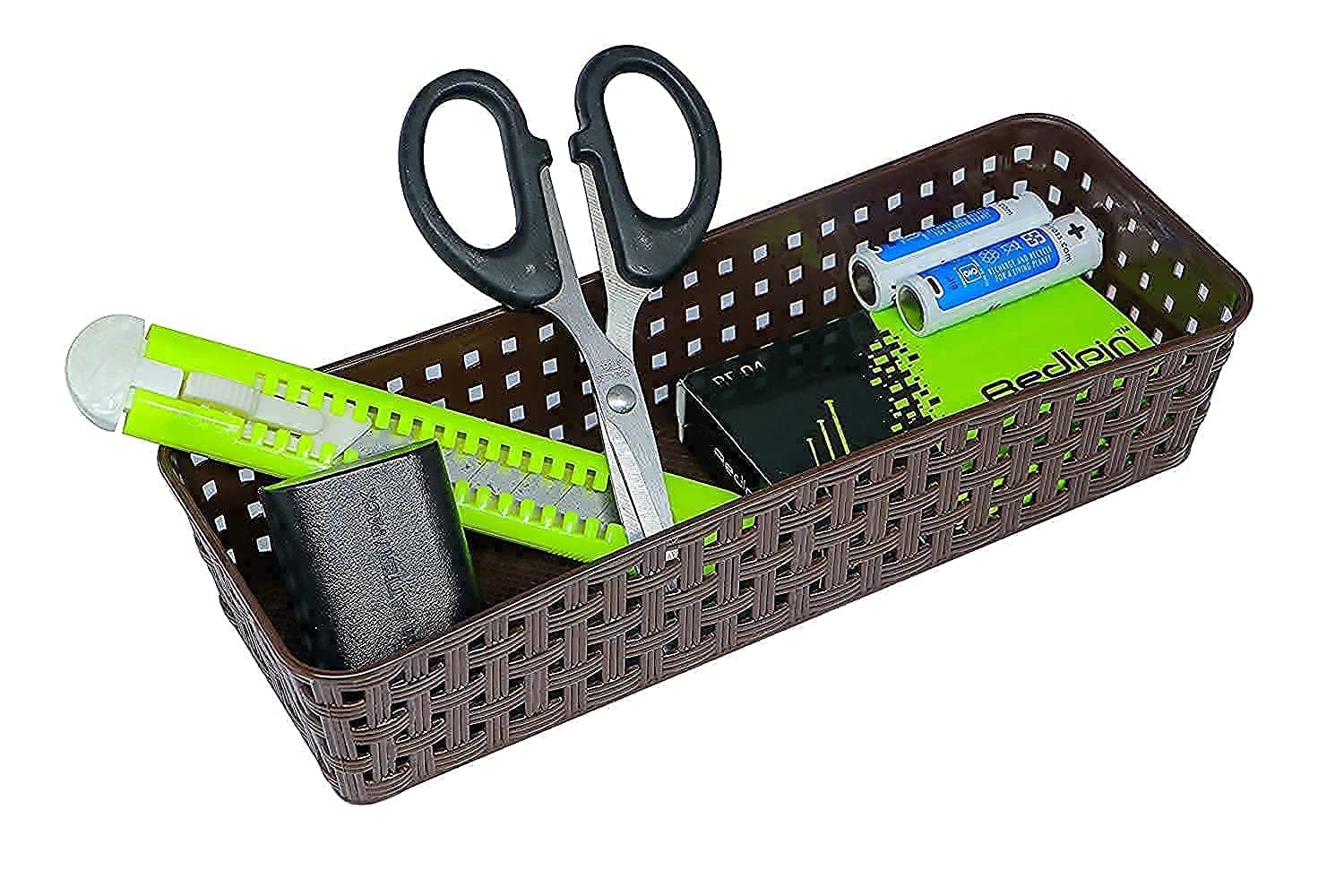 Space Multi use basket is made from virgin quality plastic and it is of Great value. It is very Much Useful in keeping the items like Knife, spoons or Forks, Fruit or vegetable pieces, Small jars, in Kitchen, . In office you can put pens, Pencils, Scissors, Staplers, Scales, Markers, Remotes, Mobile phone, Chargers,ID proofs and many more items etc.. In living room you can use in keeping comb, beauty products like Nail enamel, Cutlery, Hairpins, Bow, Jewelry and and many more small products. With the use of this basket you can store your products at one place. so surrounding looks clean and neat. It is made from premium quality plastic so it is long lasting, Sturdy and esthetic.